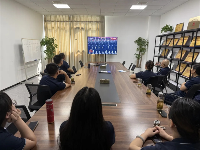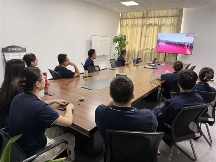 今日,同速科技组织公司全体员工观看“纪念中国人民抗日战争暨世界反法西斯战争胜利80周年”阅兵盛典,会议室内座无虚席。当阅兵式正式开始,整个观看现场顿时肃静,唯有屏幕上传来铿锵有力的脚步声和装备轰鸣声,震撼着每一位同速人,每个人的目光都紧紧锁定屏幕,心中激荡着强烈的民族自豪感。